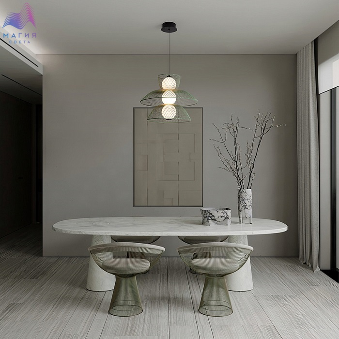 Серия подвесных светильников Freya Harper преображает пространство с помощью актуальных оттенков арматуры. К заказу доступны 3 цвета металлических плафонов в форме сетки: зеленый, бежевый и серый. Встроенный в белые матовые стеклянные плафоны LED-источник света обеспечивает мягкое, комфортное освещение.