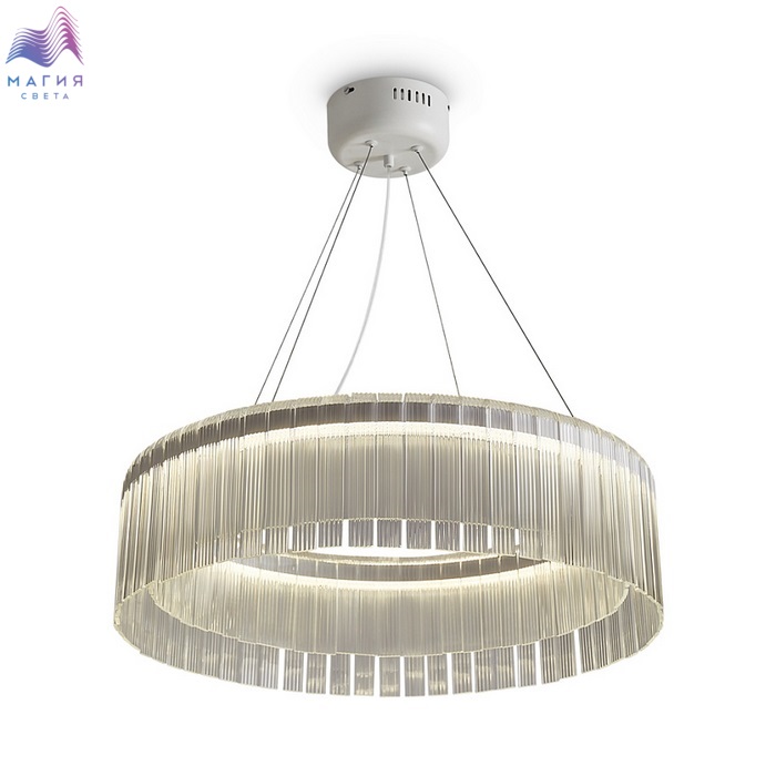 Подвесной светильник Freya Rain создает волшебство. Плафон изготовлен из прозрачных стеклянных элементов, имеющих рельефную поверхность. Источник света - встроенные светодиоды теплого белого цвета свечения (цветовая температура 2700К). Арматура выкрашена в белый цвет.