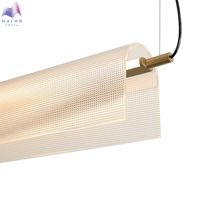 Коллекция подвесных светильников Freya Loyd. Плафон изготовлен из прозрачного рельефного стекла, внутри которого расположена LED-трубка с теплым светом 2700К. Цвет металла: латунь/черный. Высота подвеса регулируется при монтаже.