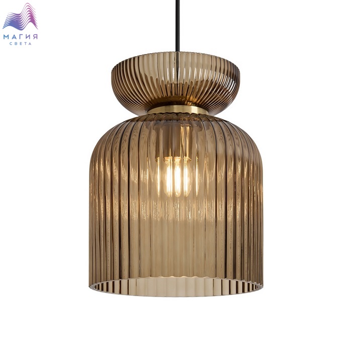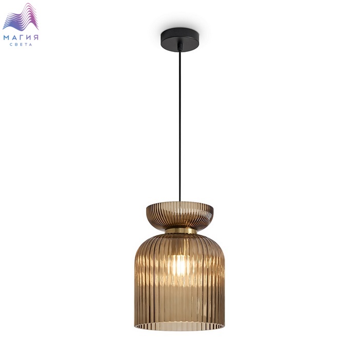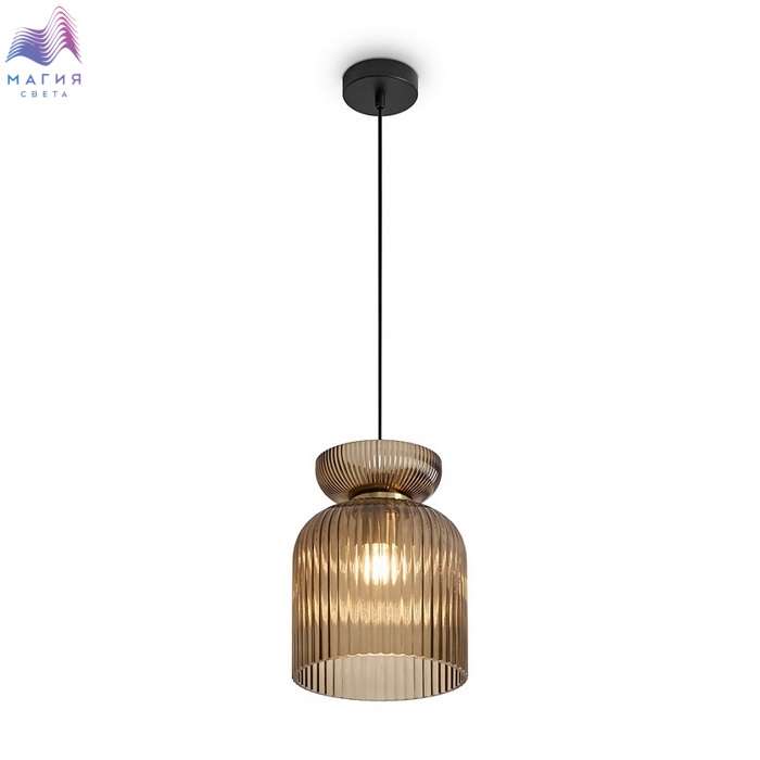 Подвесные светильники Freya Layla сочетают в себе элементы восточного и современного стилей. Рельефный стеклянный плафон окрашен в глубокие трендовые оттенки — дымчатый и теплый коричневый. Металлическая арматура представлена в черном цвете.