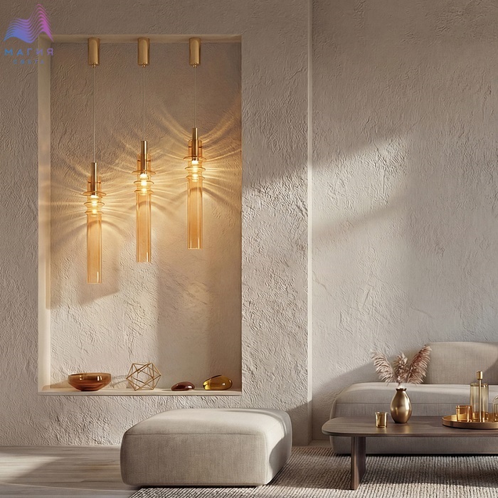 Серия Freya Trace понравится ценителям необычных форм. Рельефные стеклянные плафоны напоминают стебель бамбука. Цвет плафона на выбор: серый или янтарный. Внутир плафона установлен встроенный светодиод теплого цвета свечения.