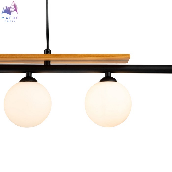 Подвесной светильник INDIGO Mitezza исполнен в стиле "лофт". Планка натуральной древесины является центральным элементом люстры из металла и матового стекла. Благодаря своей теплоте дерево создает душевную, располагающую к общению атмосферу.