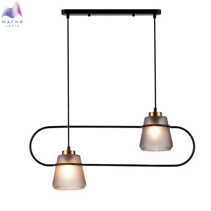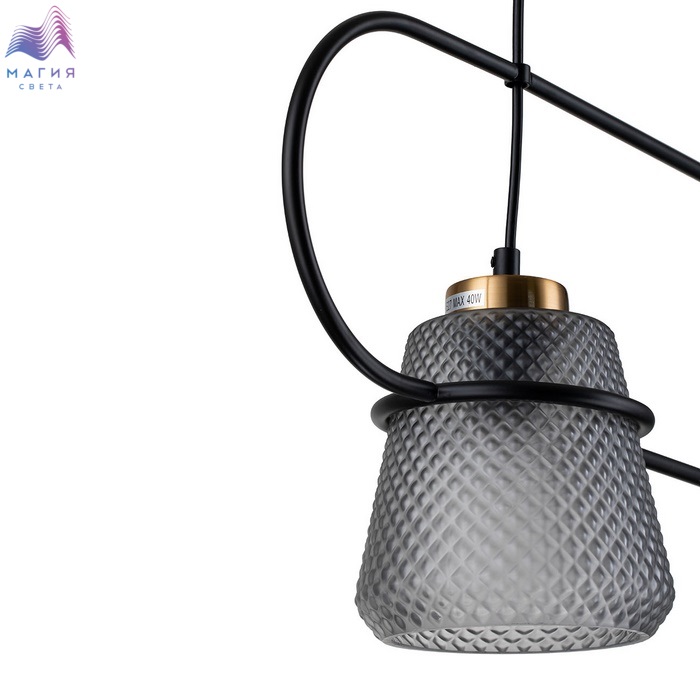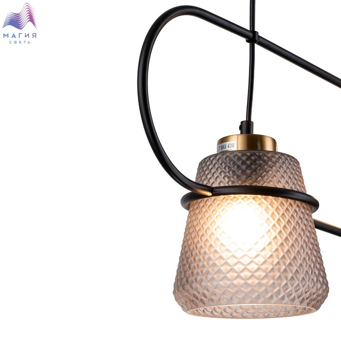 Фактурные дымчатые плафоны из стекла в сочетании с черным металлическим каркасом подчеркнут изящество и aункциональность стиля вашего интерьера, привнеся в него ноту загадочности.
