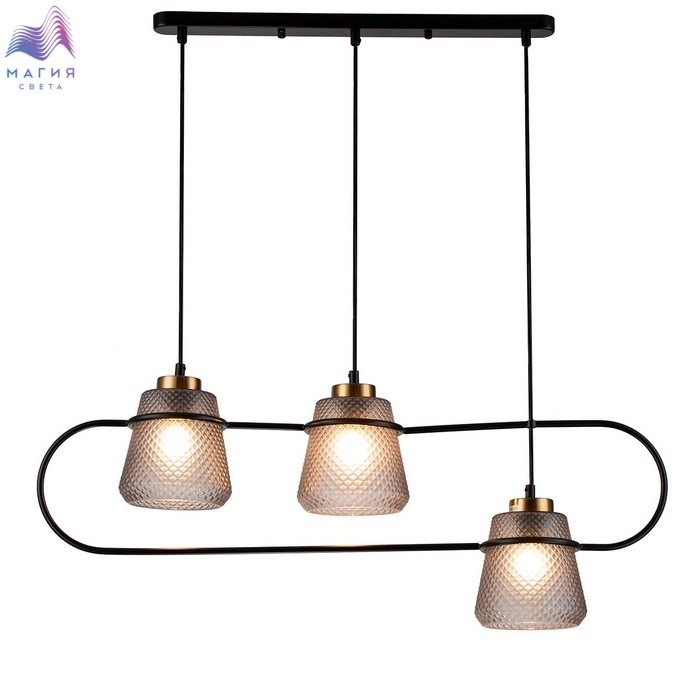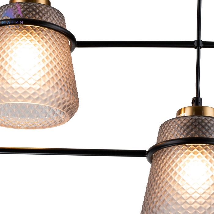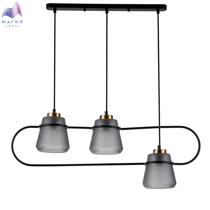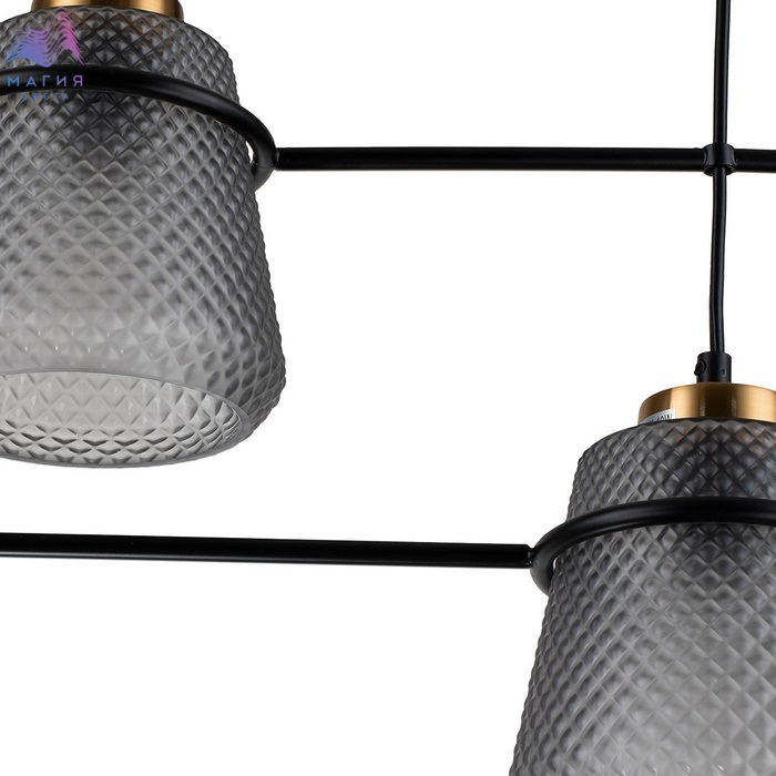 Фактурные дымчатые плафоны из стекла в сочетании с черным металлическим каркасом подчеркнут изящество и aункциональность стиля вашего интерьера, привнеся в него ноту загадочности.
