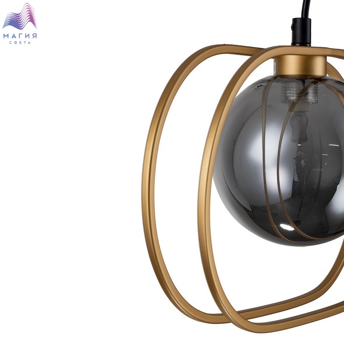 Плафоны светильников, выполненные из дымчатого стекла, объединенные золотой и черной фурнитурой, станут прекрасным дизайнерским решением.