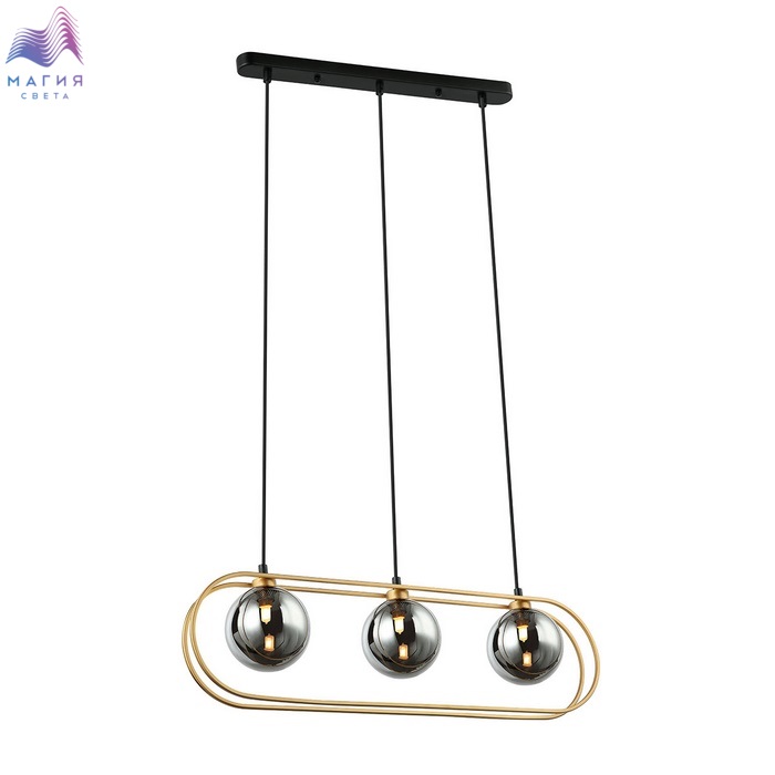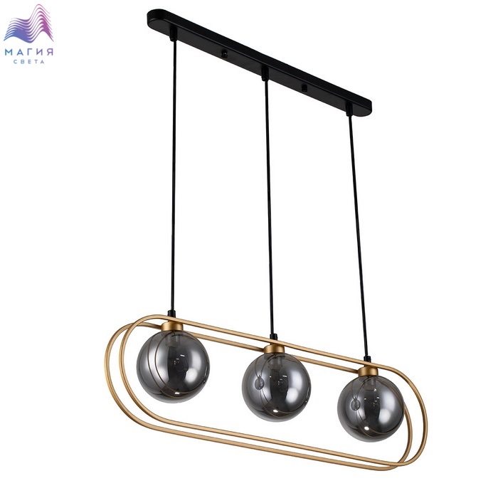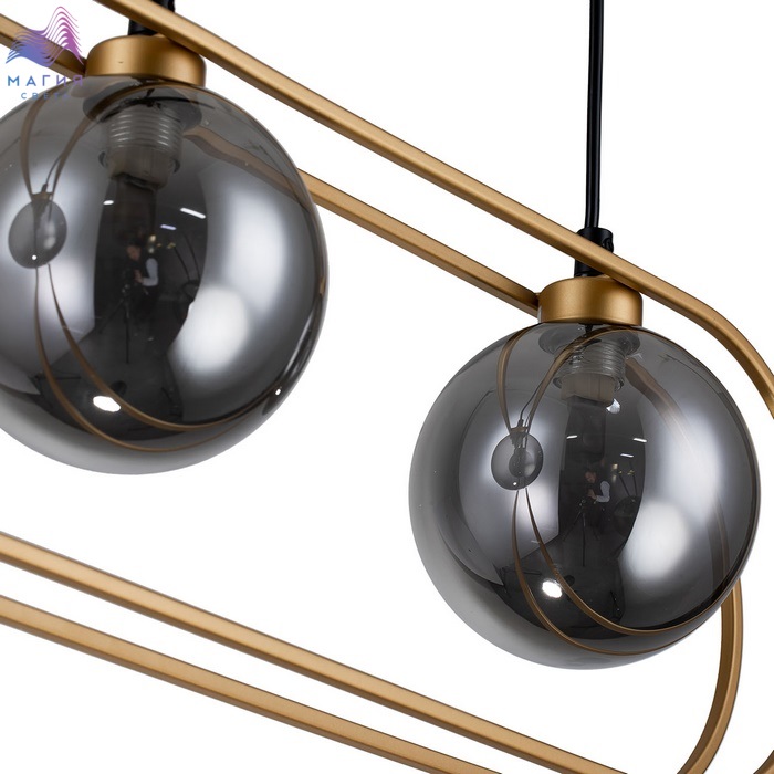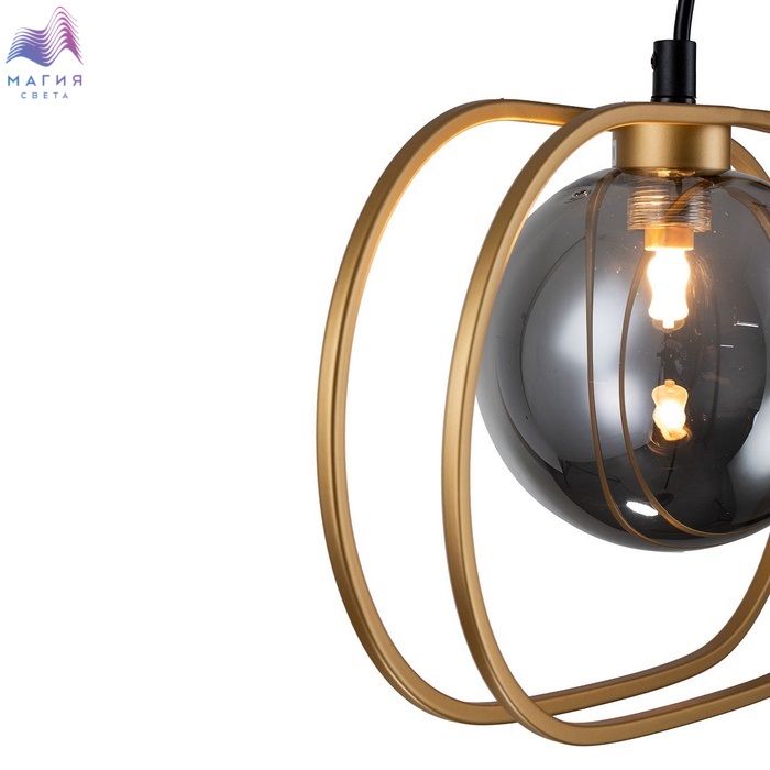Плафоны светильников, выполненные из дымчатого стекла, объединенные золотой и черной фурнитурой, станут прекрасным дизайнерским решением.