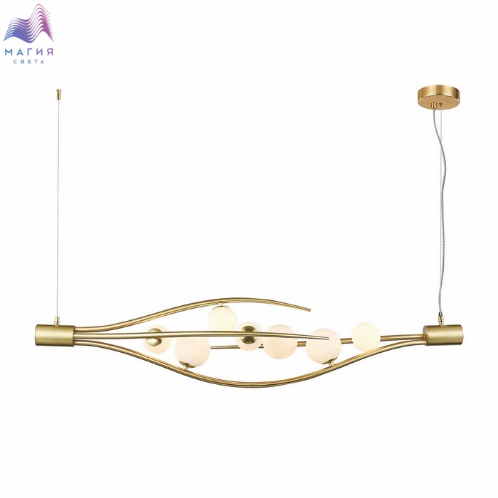 Матовые плафоны изготовлены из стекла. Металлическая арматура покрыта золотой краской. Длину подвесов можно отрегулировать при монтаже.