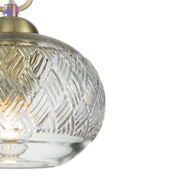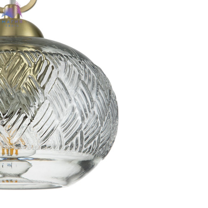 Стеклянный светильник словно расшит изящным кружевом из модных коллекций прошлых лет. А золотой аксессуар на подвесе напоминает винтажную заколку, позаимствованную из бабушкиной шкатулки.