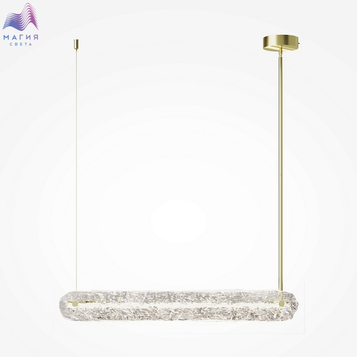 Серия Maytoni Frostum. Рельефное фактурное стекло ручной работы напоминает причудливые ледяные узоры. Металлическая арматура окрашена в цвет сатинированной латуни. Все модели оснащены встроенным LED-источником света с трехступенчатым переключателем цветовой температуры 2700-3000-4000К.