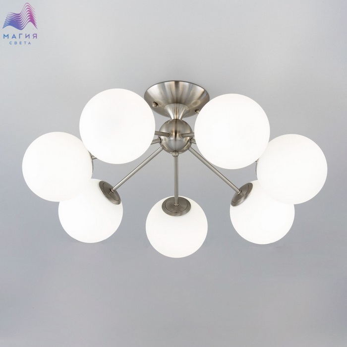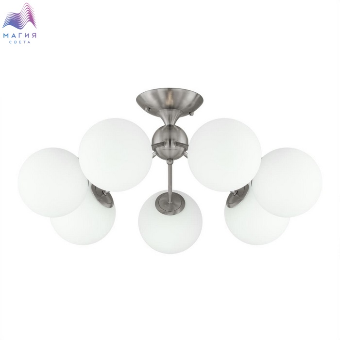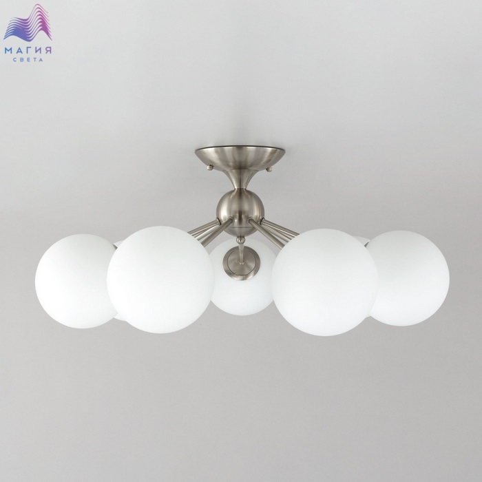 Потолочная люстра Citilux Томми CL102174. Материал: металл/стекло. Цвет: матовый хром/белый. Плафоны стеклянные, в форме шара. Площадь освещения около 17м².