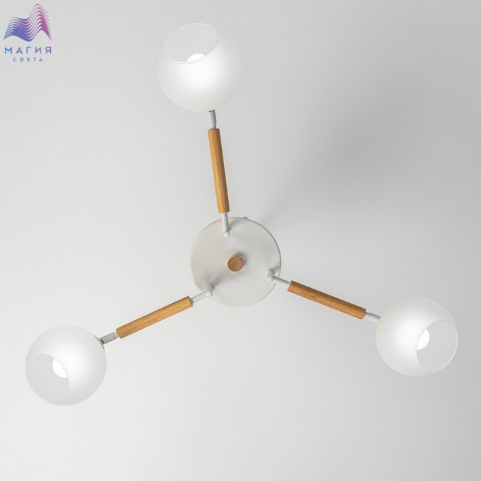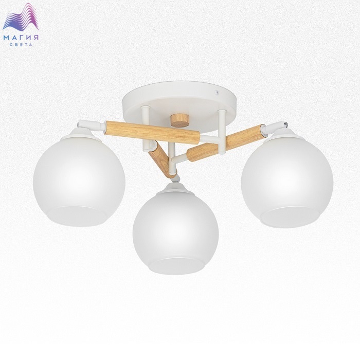Потолочная люстра Citilux Tika CL133130. Материал: металл/дерево/стекло. Цвет: белый/натуральное дерево/белый. Поворотные шарниры позволяют направить плафоны в любую сторону.