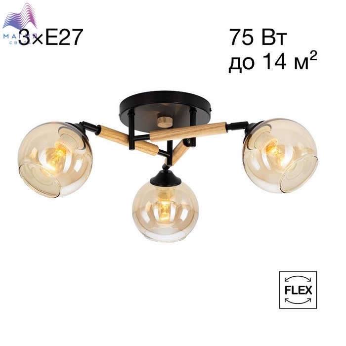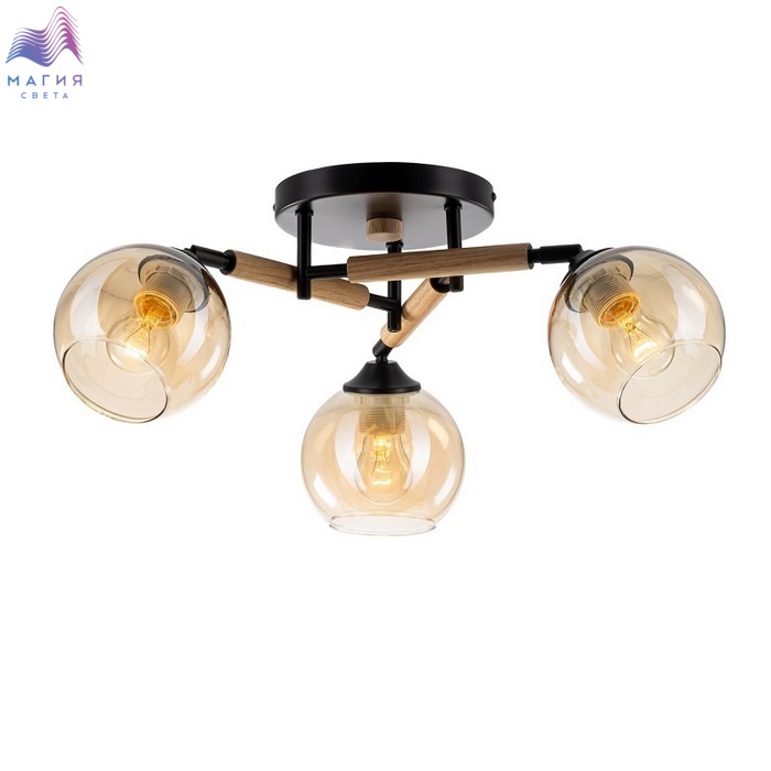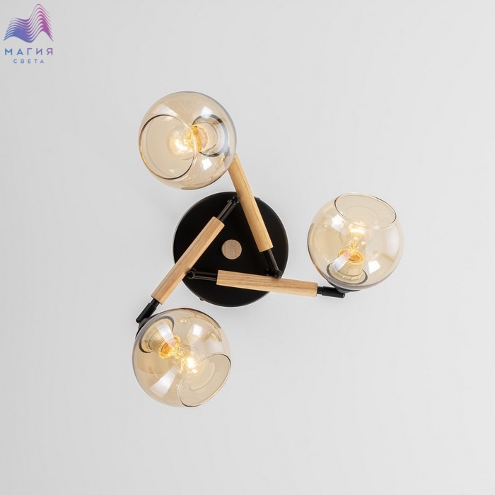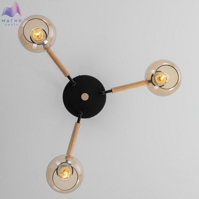 Потолочная люстра Citilux Tika CL133131. Материал: металл/дерево/стекло. Цвет: черный/натуральное дерево/шампань. Поворотные шарниры позволяют направить плафоны в любую сторону.