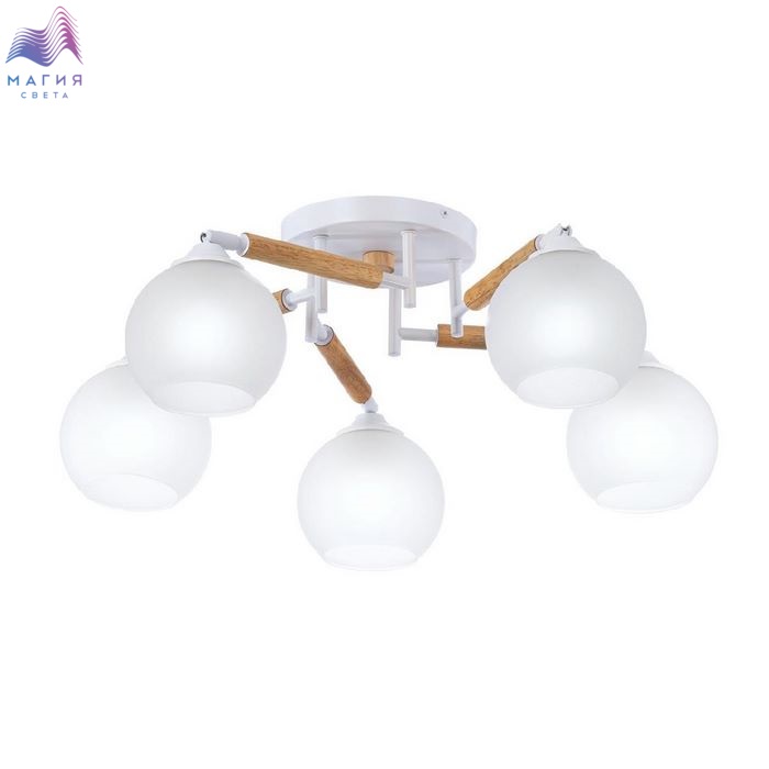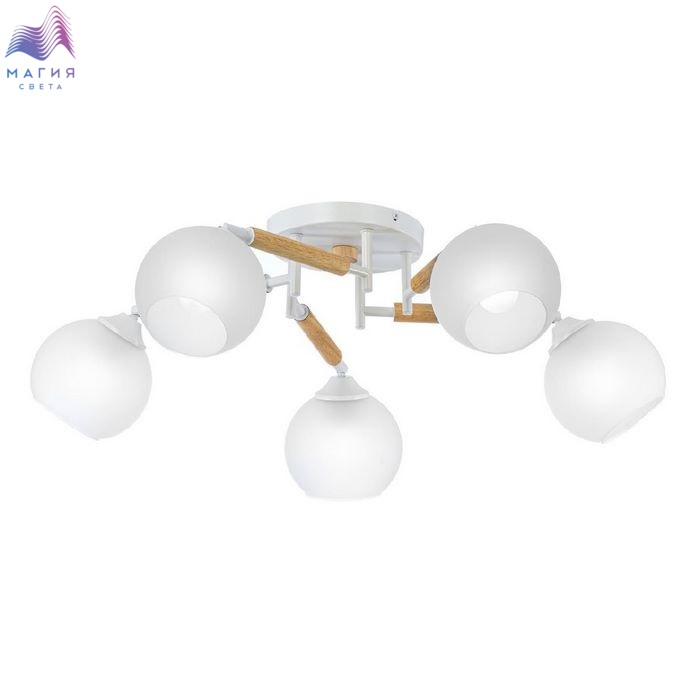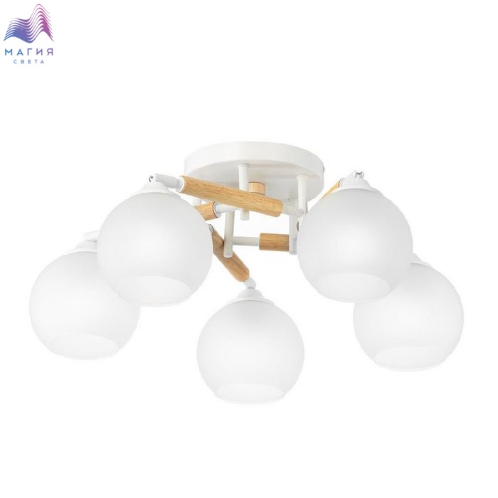 Потолочная люстра Citilux Tika CL133150. Материал: металл/дерево/стекло. Цвет: белый/натуральное дерево/белый. Поворотные шарниры позволяют направить плафоны в любую сторону.