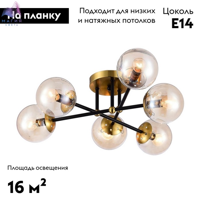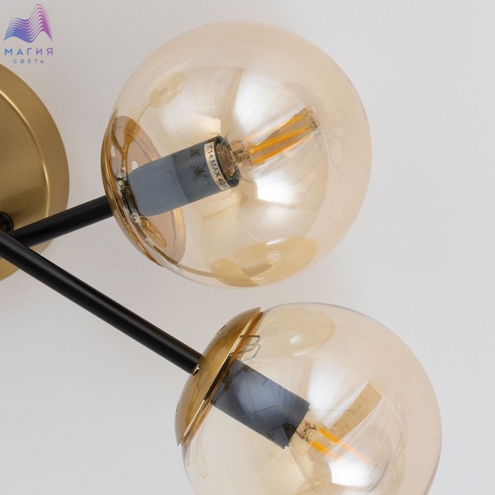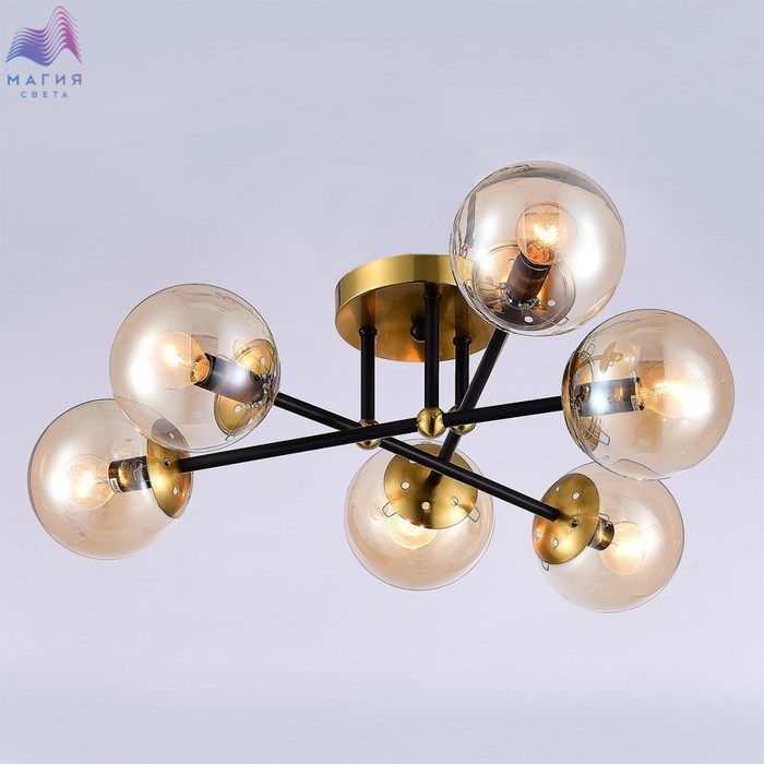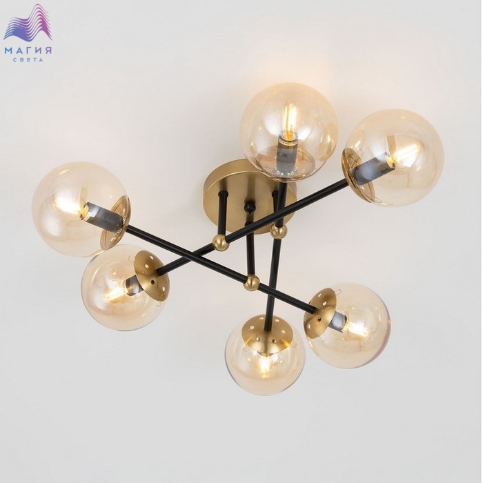 Потолочная люстра Citilux Памела CL144165. Материал: металл/стекло. Цвет: черный/бронза/шампань. Плафоны в форме шара.