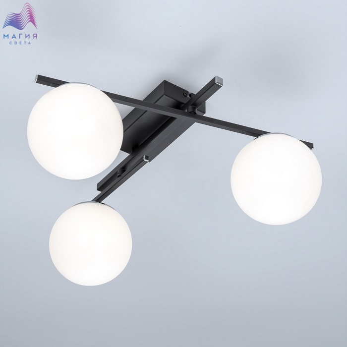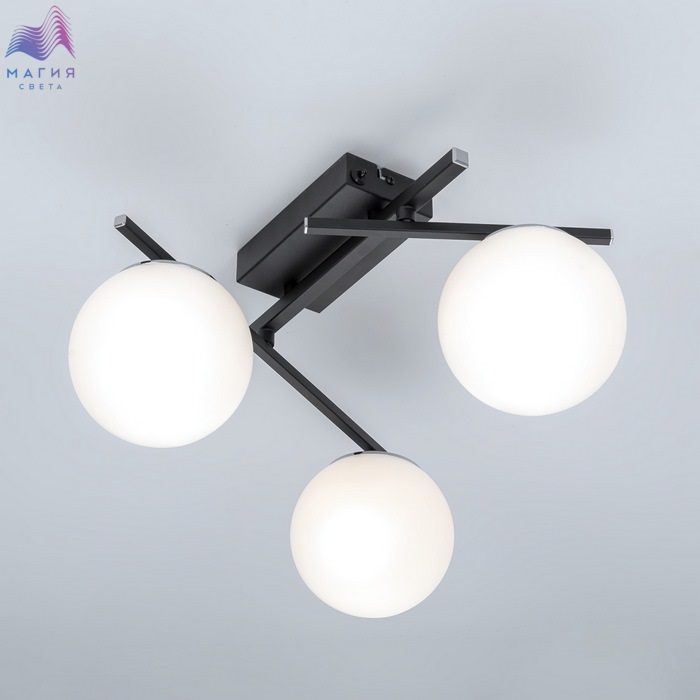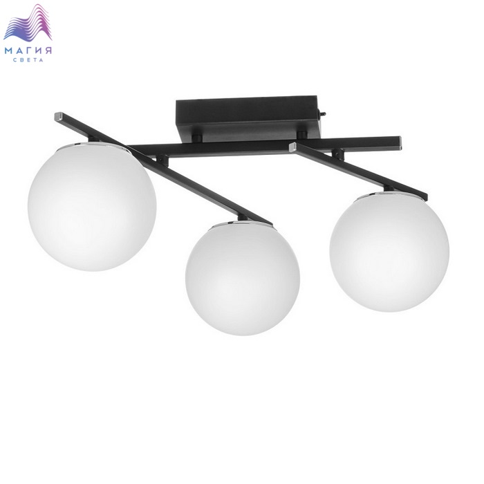 Потолочная люстра Citilux DORSY CL223132. Материал: металл/полимер. Цвет: черный/белый. Три плафона в форме шаров. Поворотные рожки позволят придать модели различные формы.