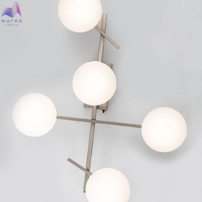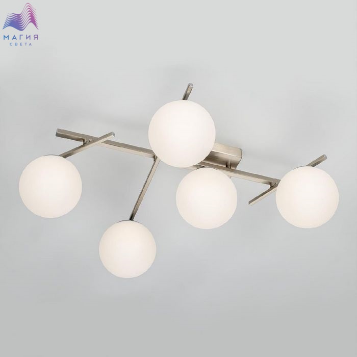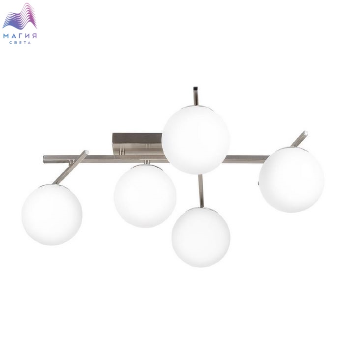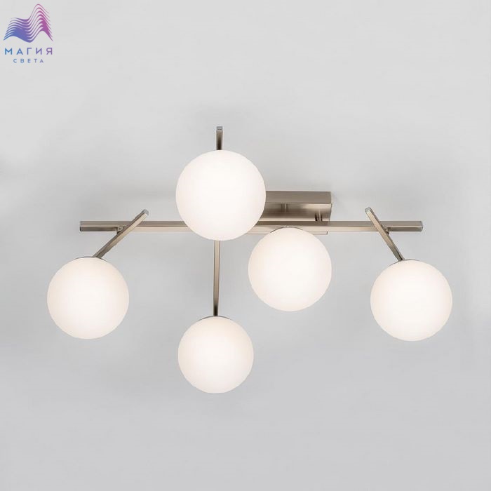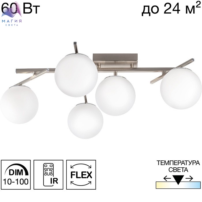 Потолочная светодиодная люстра Citilux CL223151 Dorsy. Материал: металл/полимер. Цвет: матовый хром/белый. Пять плафона в форме шаров из матового оптического полимера. Поворотные рожки позволят придать модели различные формы. Пульт ДУ в комплекте (регулировка яркости от 10 до 100%, цветовая температура от 3000 до 5500К).