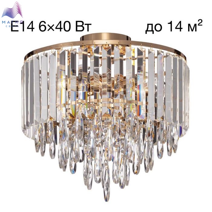 Хрустальная люстра Citilux LEONNA CL320162. Материал: металл/хрусталь. Цвет: золото/прозрачный. Площадь освещения до 14м².