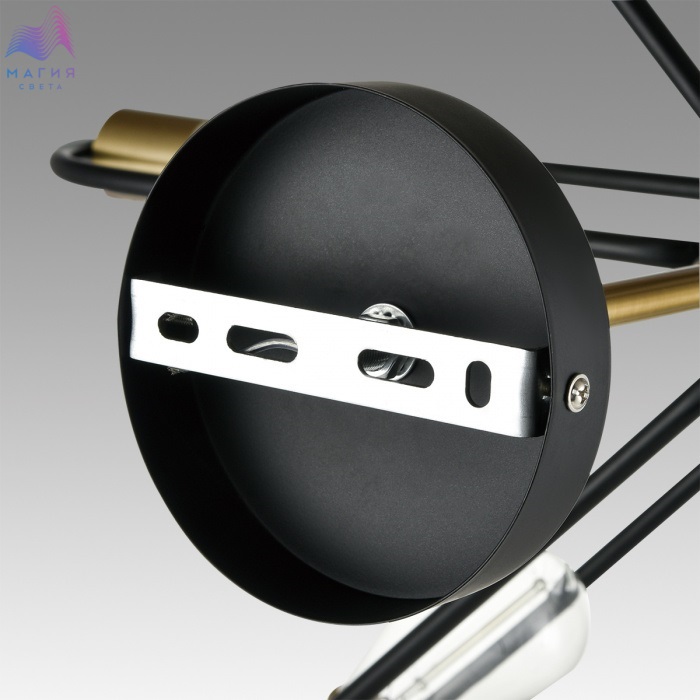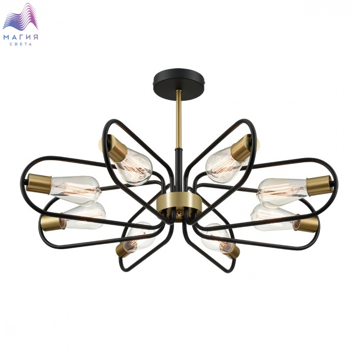 Потолочная люстра Lumion Almira исполнена в стиле лофт. Черные дуги основания в глубине изгиба обрамляют лампу. Медные элементы выступают скромным декором, акцентируя внимание в целом на люстре.