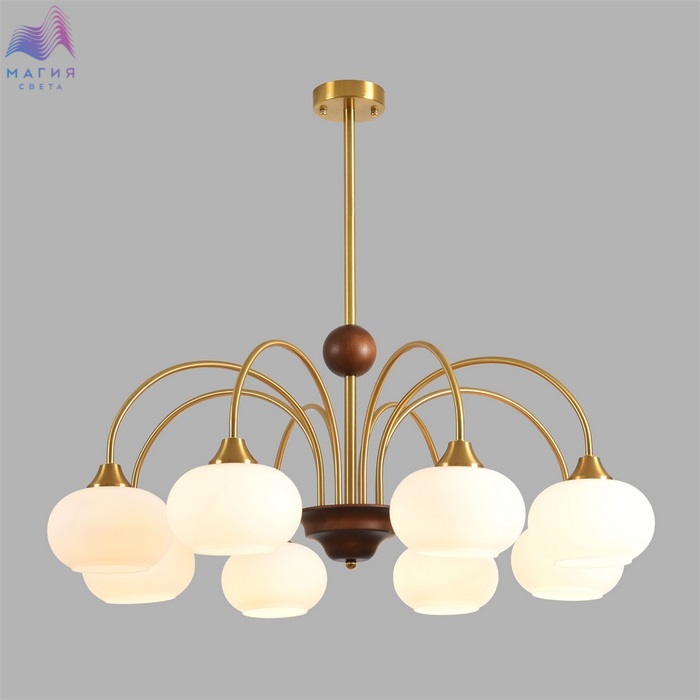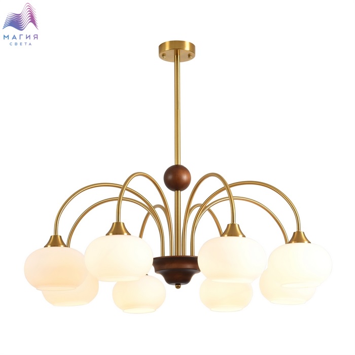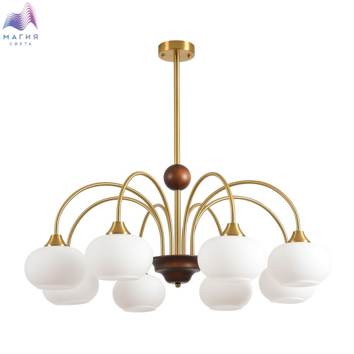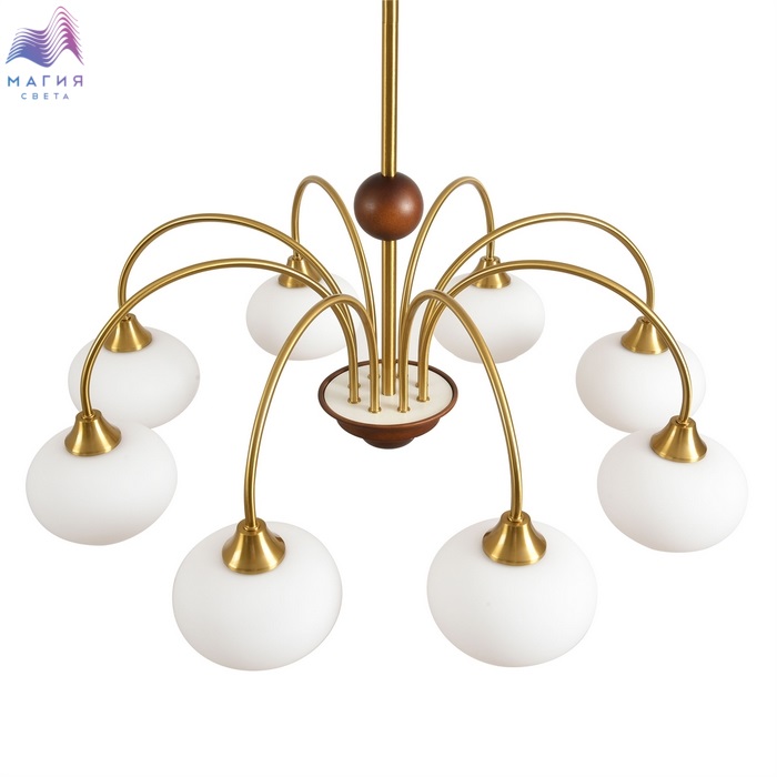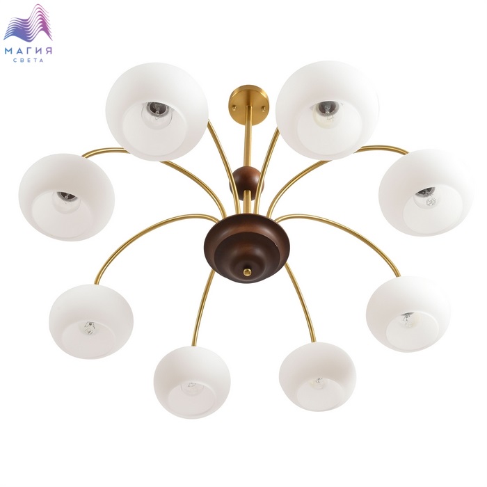 Серия светильников Lumion Larina выполнена из металла в цвете латунь. Плафоны имеют классическую круглую форму. Люстры этой серии имеют вставки из красного дерева.