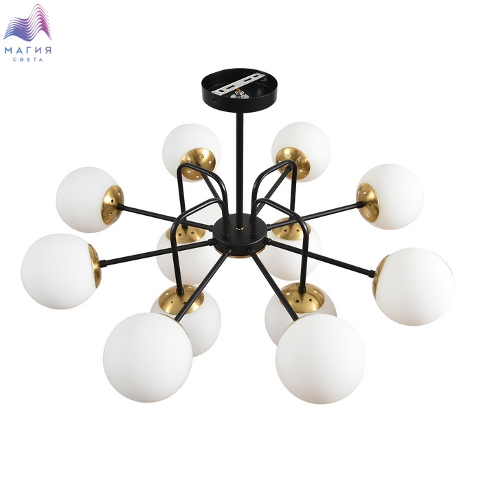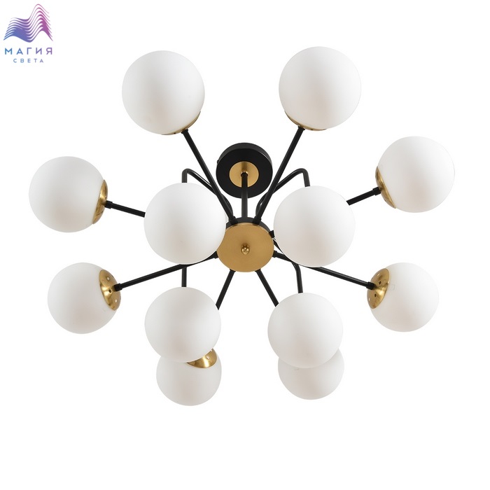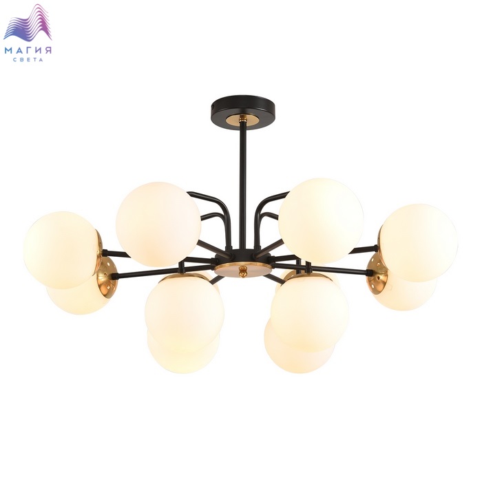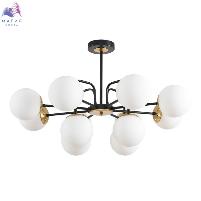 Серия светильников Lumion Elrona - стильное и современное решение для интерьеров. Каркас исполнен в черном цвете с латунными элементами. Плафоны в форме шара изготовлены из белого стекла.