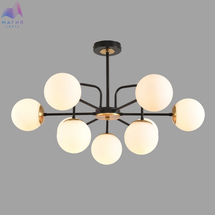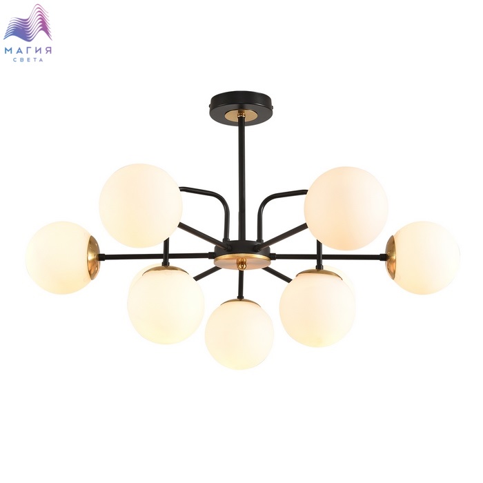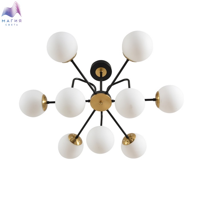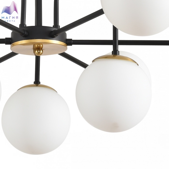Серия светильников Lumion Elrona - стильное и современное решение для интерьеров. Каркас исполнен в черном цвете с латунными элементами. Плафоны в форме шара изготовлены из белого стекла.