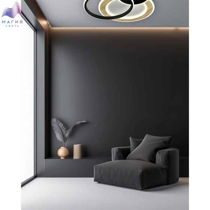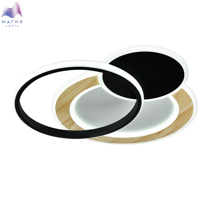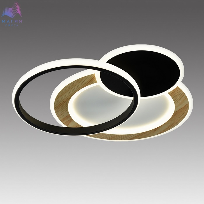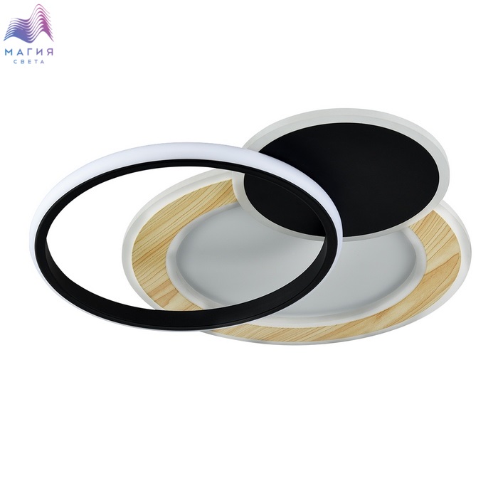 Основание светильника Сонекс Pine - металл, реалистично выкрашенный в цвет светлого дерева. Светодиодные контуры расположены по внешнему краю белых окружностей. Светильник оснащен пультом ДУ.