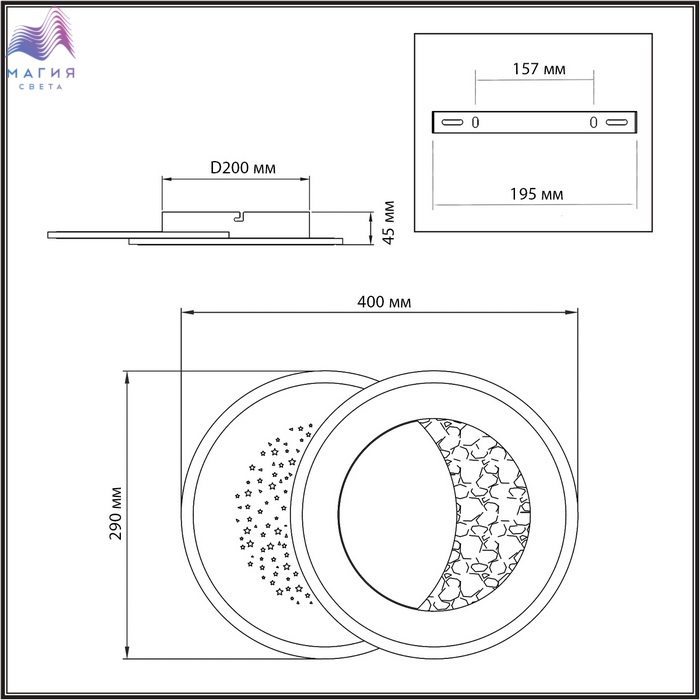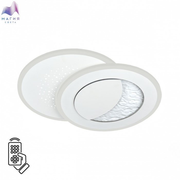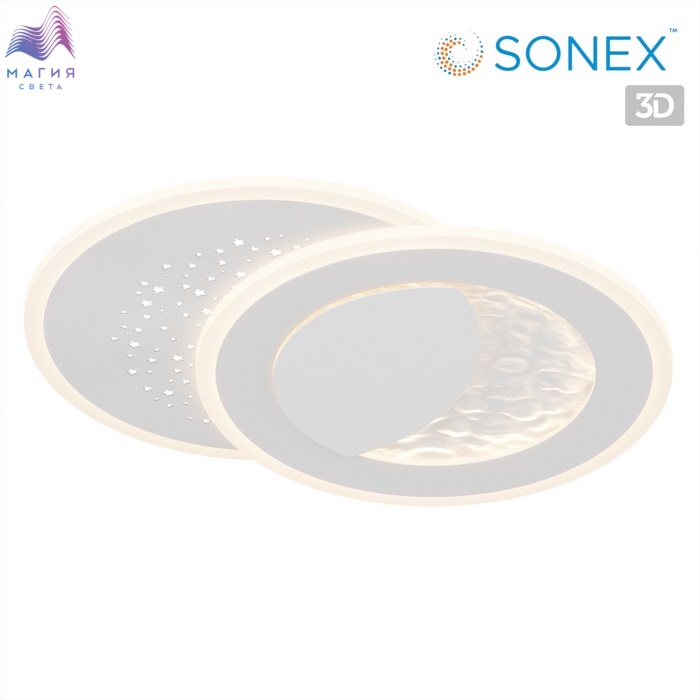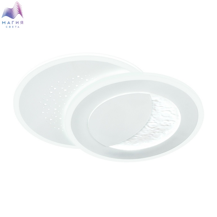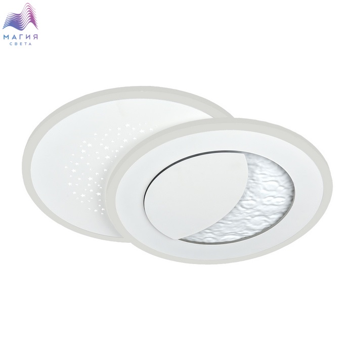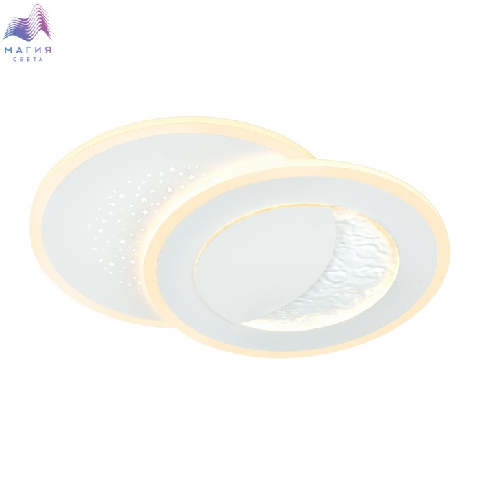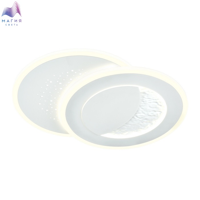 Модель Сонекс Stars благодаря встроенной светодиодной ленте и фактуре металла, имитирующего поверхность луны, создает эффект светящегося месяца. Второй контур светильника имеет перфорацию в виде звезд. Светильник оснащен пультом ДУ.