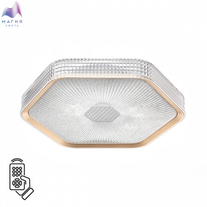 Потолочный светодиодный светильник Сонекс Sparks имеет форму шестиугольника. Материал: металл/пластмасса. Цвет: белый/прозрачный/золото. Пульт ДУ включен в комплект.
