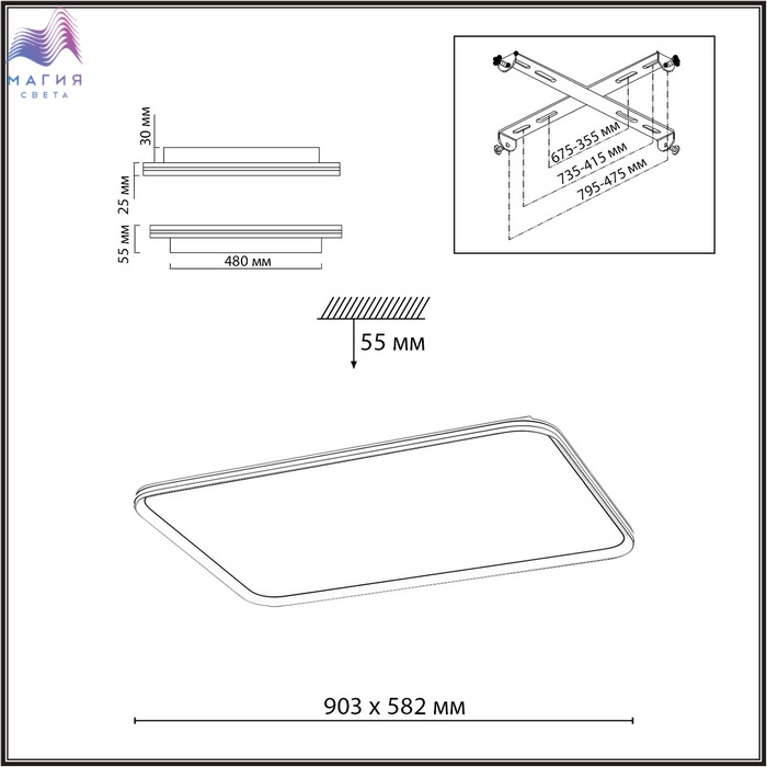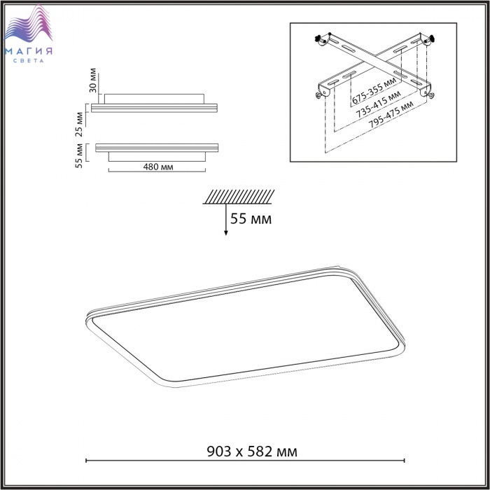 Тонкие стильные светильники Сонекс Beta имеют световую вставку по контуру. Большие прямоугольные модели представлены в самой популярной температуре цвета 4000К.