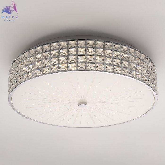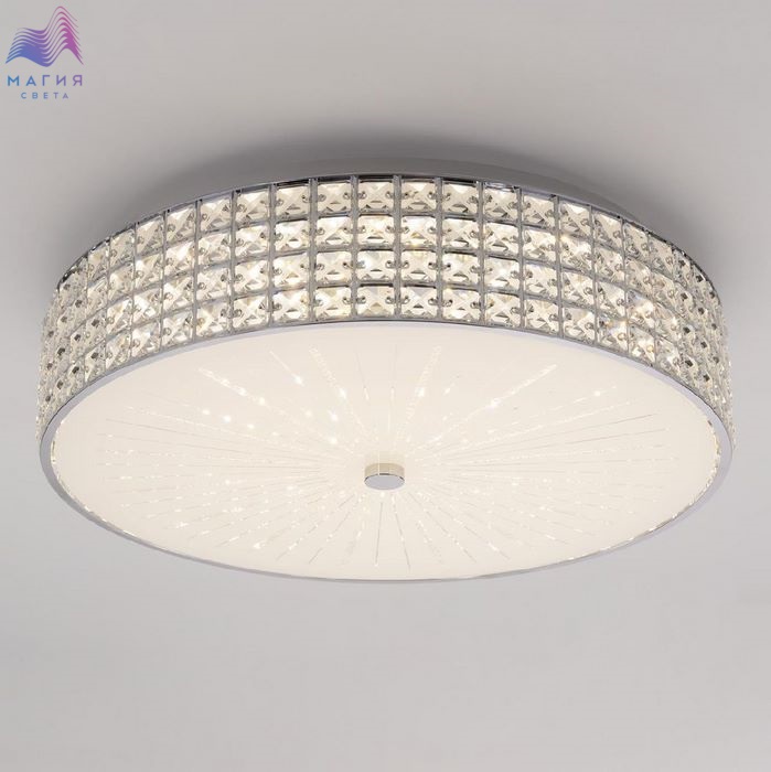Хрустальная потолочная люстра Citilux Портал CL32418G1. Материал: металл/стекло/хрусталь. Цвет: хром/белый/прозрачный. В изделии установлены яркие светодиоды основного света и цветной RGB подсветки. Пульт ДУ в комплекте (плавная регулировка яркости от 10 до 100%, управление цветовой температурой от 3000К до 5500К, цветная RGB подсветка).