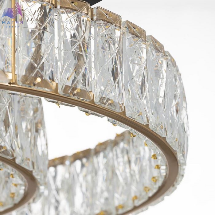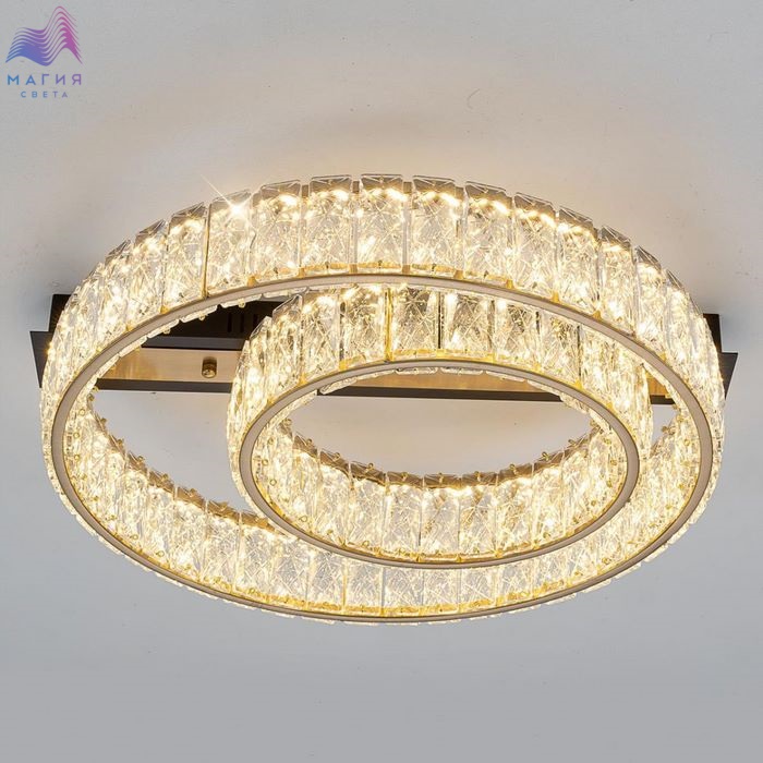 Хрустальная потолочная люстра Citilux PALANT CL325152. Материал: металл/хрусталь. Цвет: черный/бронза/прозрачный. На прямоугольном основании закреплены два кольца-модуля с хрустальным рассеивателем. Светодиодный свет с цветовой температурой 3000К мягко рассеивается в пространстве.