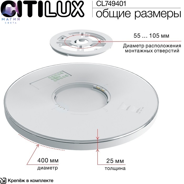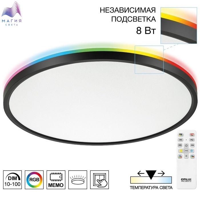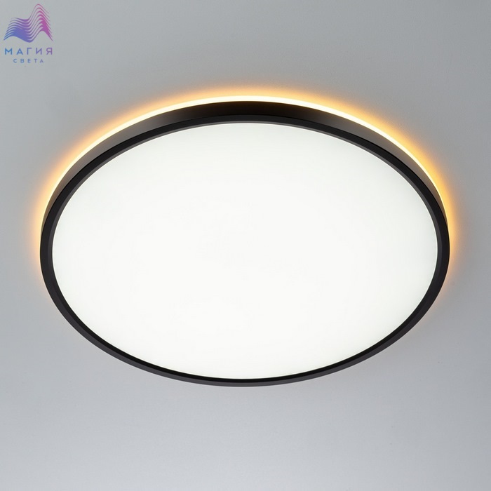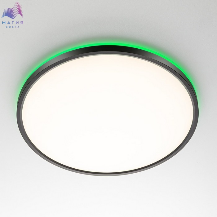 Потолочный светодиодный светильник Citilux NORMA CL749401. Материал: полимер. Цвет: черный/белый. Модель оснащена двумя светодиодными модулями – основного света и красочной потолочной RGB подсветки. Пульт ДУ в комплекте (плавная регулировка яркости от 10 до 100%; управление цветовой температурой от 3000К до 5500К, цветная RGB подсветка). Площадь освещения - до 17м².