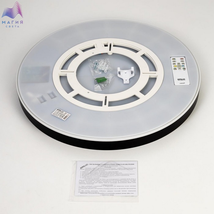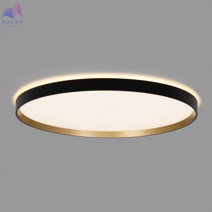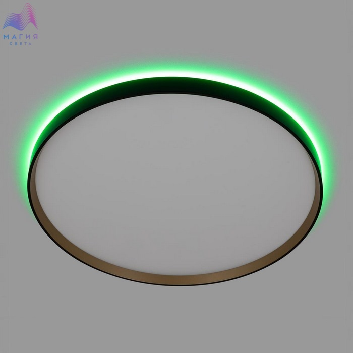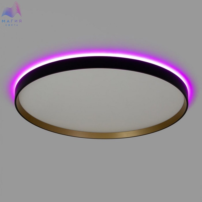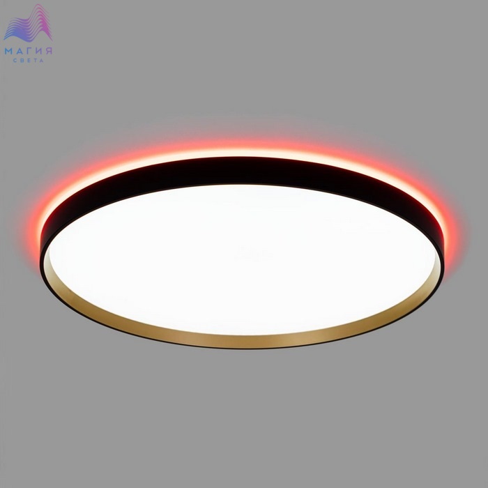 Потолочный светодиодный светильник Citilux ETALON CL750501R. Материал: полимер. Цвет: черный/белый/золото. Модель оснащена двумя светодиодными модулями – основного света и красочной потолочной RGB подсветки. Пульт ДУ в комплекте (плавная регулировка яркости от 10 до 100%; управление цветовой температурой от 3000К до 5500К, цветная RGB подсветка). Площадь освещения - до 21м².