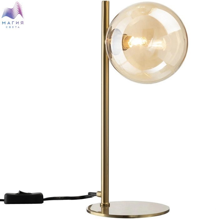 Настольная лампа Citilux Нарда CL204810. Материал: металл/стекло. Цвет: бронза/шампань. Плафон в форме шара изготовлен из прозрачного стекла светло-янтарного оттенка. Выключатель находится на сетевом шнуре, длина шнура 1,8м.