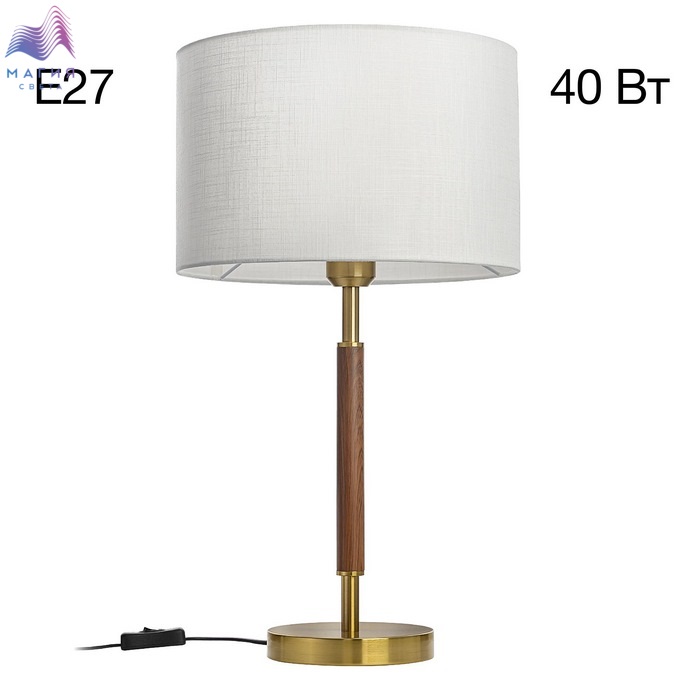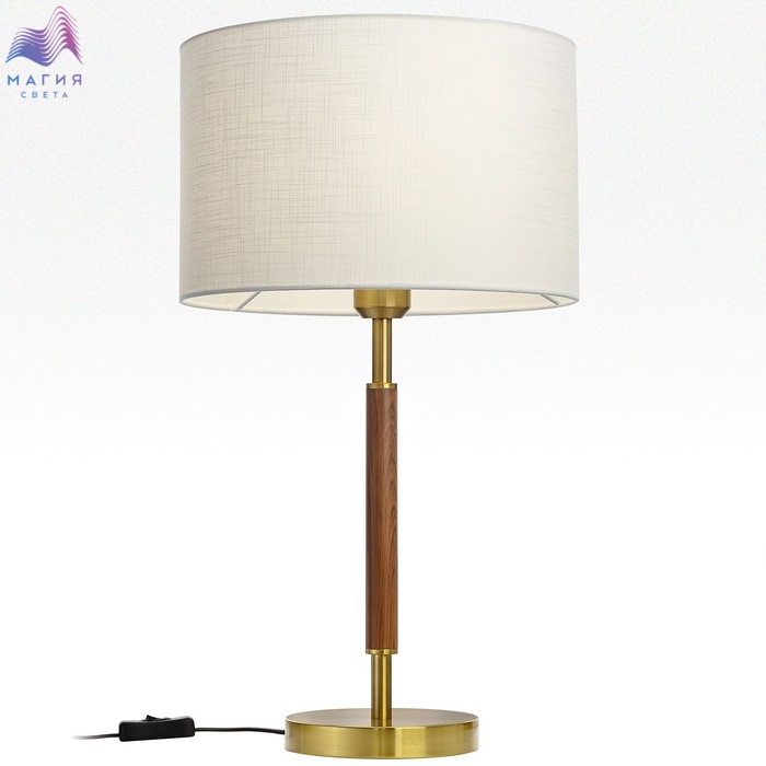 Настольная лампа Citilux SHERMAN CL436812. Материал: металл/текстиль. Цвет: бронза/под дерево/молочно-белый. Выключатель расположен на сетевом шнуре.
