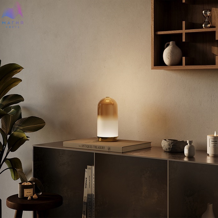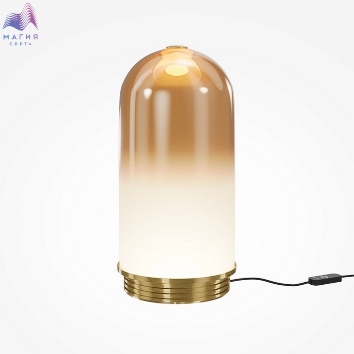 Серия Maytoni Fable. В коллекции представлены два цветовых решения: металлическое основание в цвете сатинированной латуни в сочетании с медово-янтарным стеклом или основание черного цвета в сочетании с дымчато-серым плафоном. Стекло окрашено зеркальным градиентом от цветного к полупрозрачному белому.