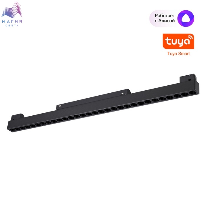 Диммируемые линейные трековые светильники Novotech FLUM позволяют настраивать цветовую температуру от 3000К до 6000K. Светильник управляется дистанционно через пульт ДУ (арт. 359640 - приобретается отдельно), приложение Smart Life и даже голосом благодаря интеграции с ассистентом Алиса.