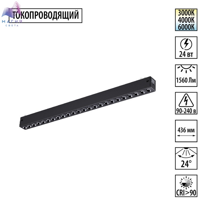 Трековая смарт-система Novotech VECTOR 220В. Система представлена двумя линейками светильников: первая оснащена интеллектуальной системой управления через мобильное приложение, позволяющей менять яркость и цветовую температуру света, вторая — светильники с простым механическим переключателем трех уровней цветовой температуры (3000, 4000, 6000 К).