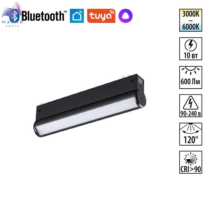 Трековая смарт-система Novotech VECTOR 220В. Система представлена двумя линейками светильников: первая оснащена интеллектуальной системой управления через мобильное приложение, позволяющей менять яркость и цветовую температуру света, вторая — светильники с простым механическим переключателем трех уровней цветовой температуры (3000, 4000, 6000 К).