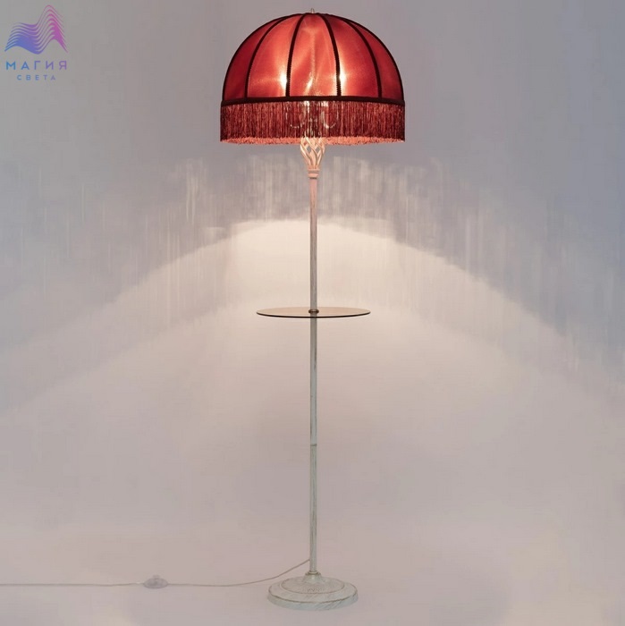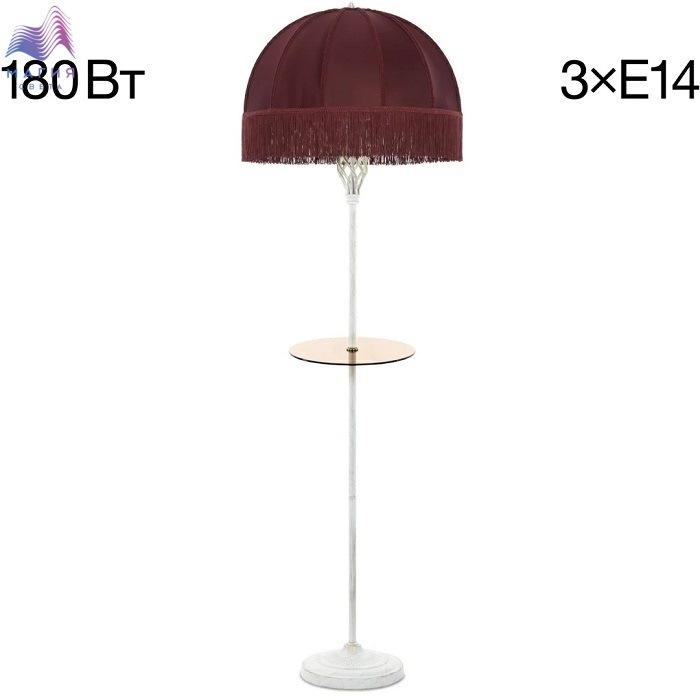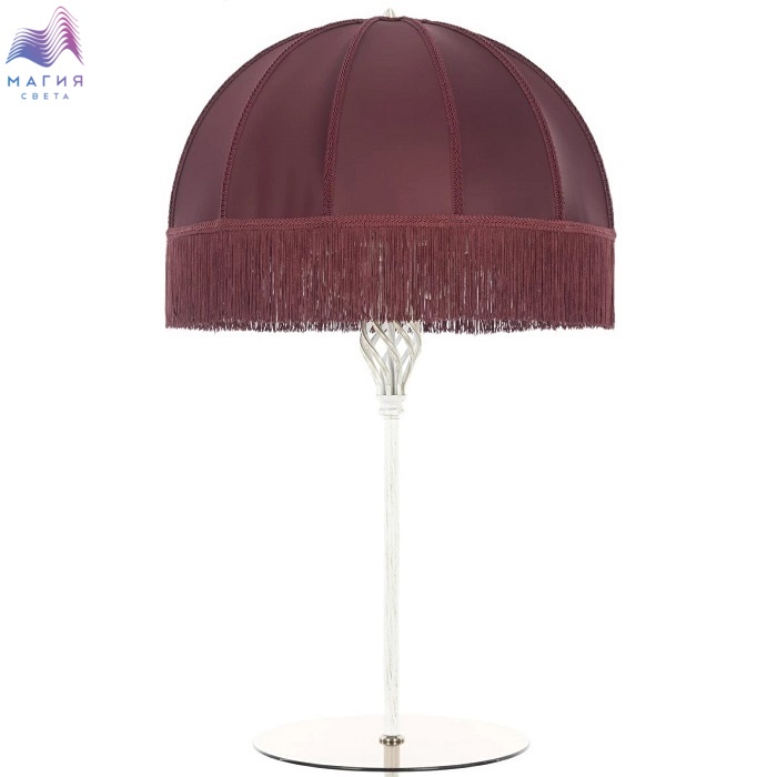 Торшер Citilux Базель CL407923T. Материал: металл/текстиль. Цвет: бронза/красный. Абажур из гладкой темно-вишневой ткани декорирован ажурной тесьмой и обшит бахромой. Сетевой шнур длиной 2м с напольным выключателем.
