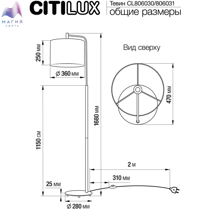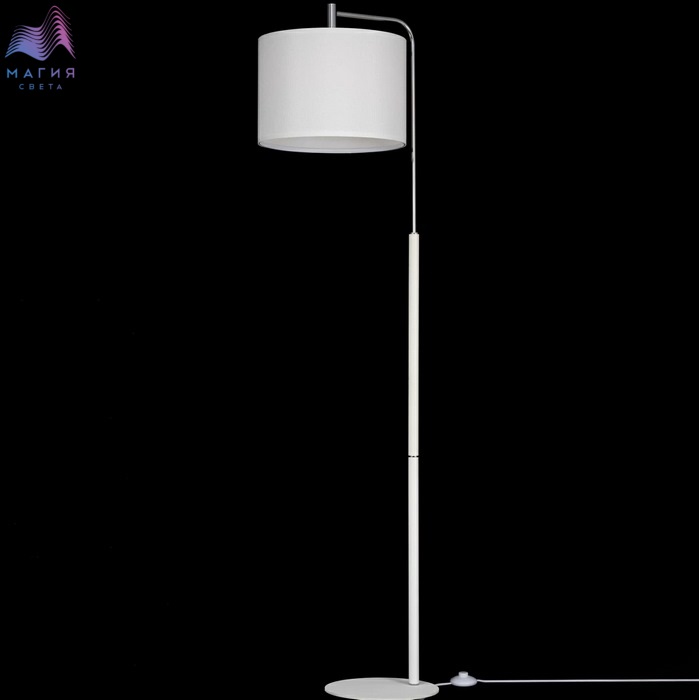 Торшер Citilux Тевин CL806030. Материал: металл/текстиль. Цвет: белый/хром. Абажур цилиндрической формы из ткани белого цвета на подложке из оптического полимера. Длина сетевого шнура с напольным выключателем 2м.