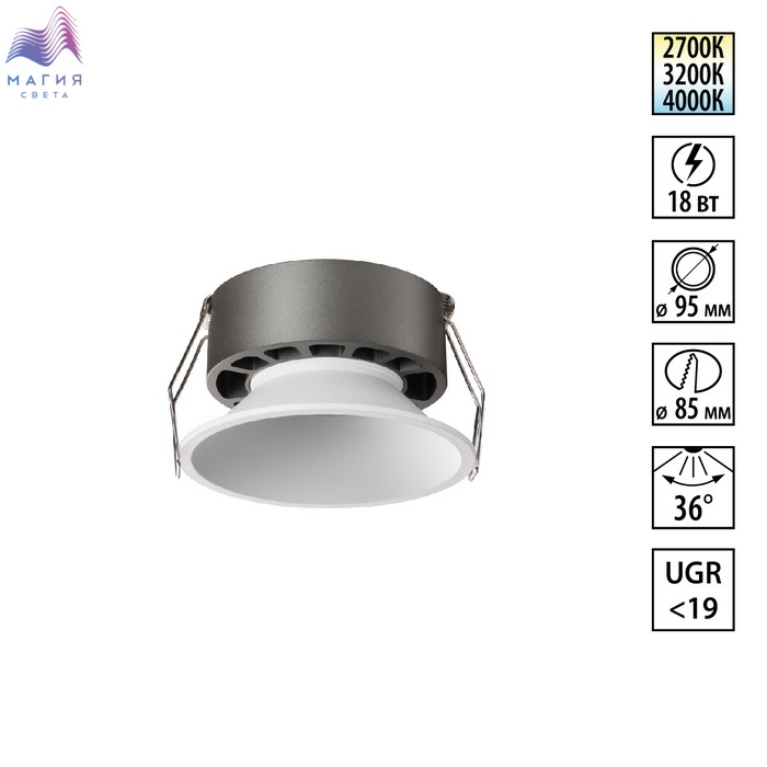 Встраиваемые светильники Novotech NOVA. Можно выбрать оттенок свечения (2700K/3200K/4000K). 3 цвета корпуса: матово-чёрный, матовый белый, брашированная бронза.