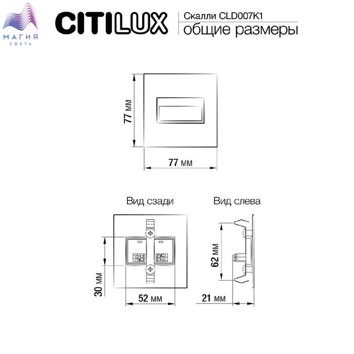 Светодиодный светильник для подсветки ступеней Citilux Скалли CLD007K1. Материал: металл/полимер. Цвте: матовый хром/белый. Форма - квадрат. Установка светильника не вызовет трудностей - он монтируется в стандартный подрозетник.