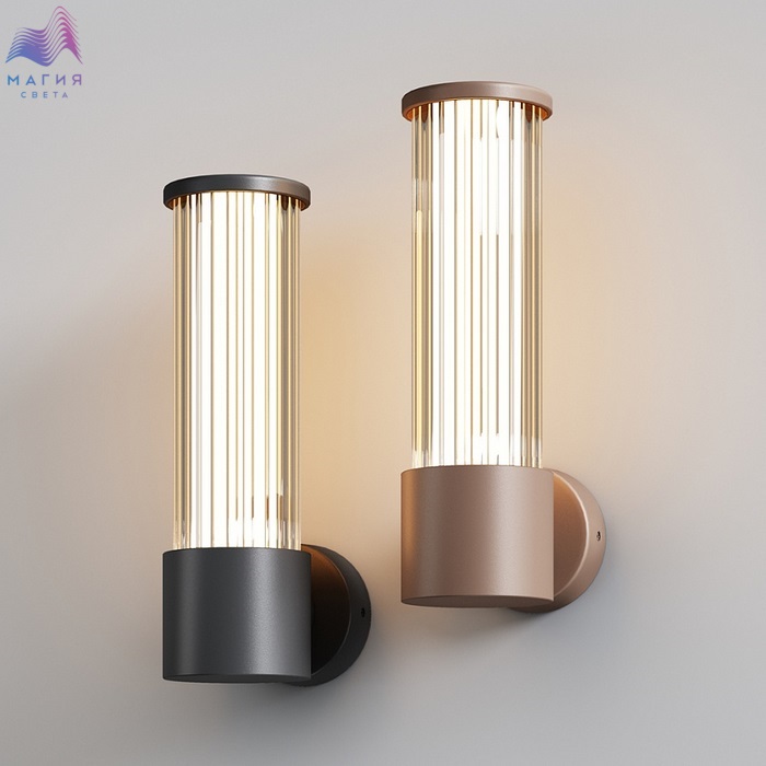 Уличный настенный светильник Maytoni Lit. Корпус - алюминий, цвета - черный, коричневый. Двойной плафон из стекла. Внешний - прозрачный с линейным рельефным рисунком. Внутренний - белый глянцевый рассеиватель. Модели мощностью от 12Вт до 20Вт - предназначены для основного освещения. LED-источник света, цветовая температура - 3000К.