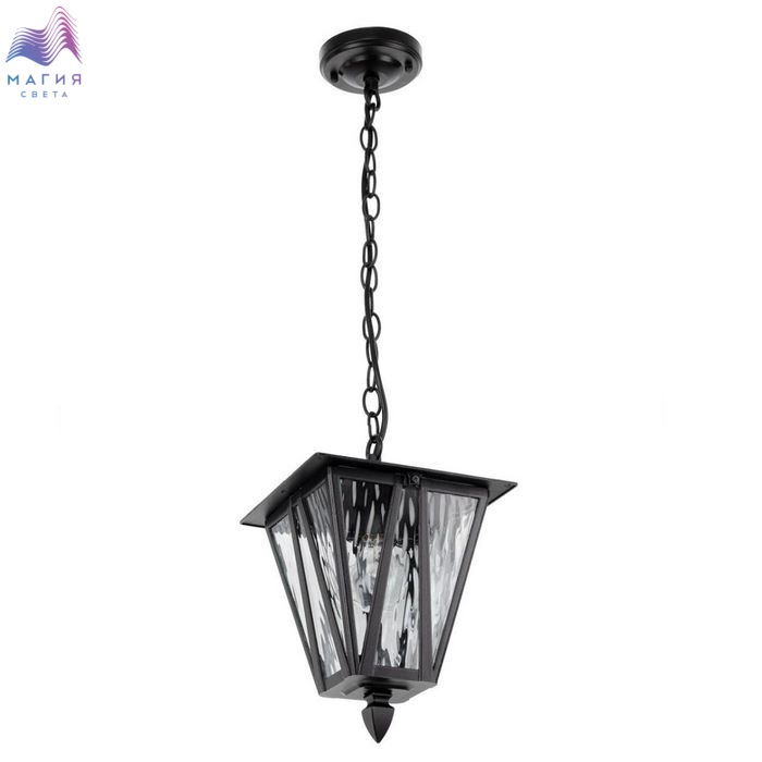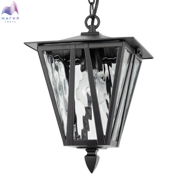 Уличный подвесной светильник Citilux FORTS CLU09S. Материал: металл/стекло. Цвет: черный/прозрачный. Плафон в форме перевёрнутой усечённой пирамиды дополнен оригинальной раскладкой и прозрачным волнистым стеклом. Модель имеет высокую степень защиты — IP54.