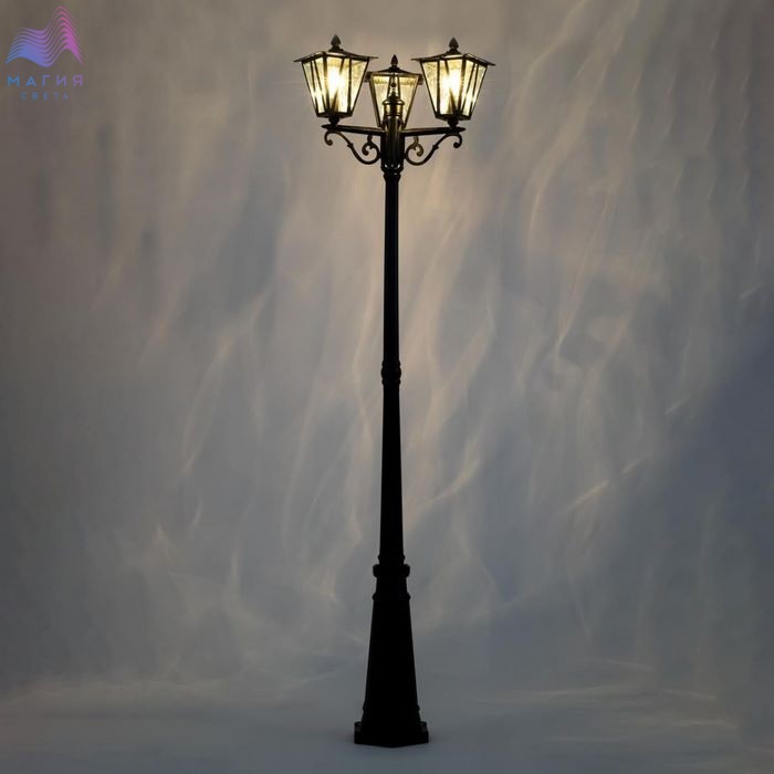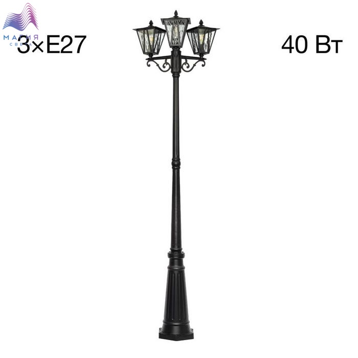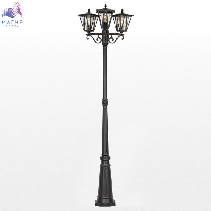 Садово-парковый светильник Citilux FORTS CLU09P3. Материал: металл/стекло. Цвет: черный/прозрачный. Три плафона в форме перевёрнутой усечённой пирамиды дополнены оригинальной раскладкой и прозрачным волнистым стеклом. Наземный светильник с закрытыми плафонами имеет высокую степень защиты — IP54.