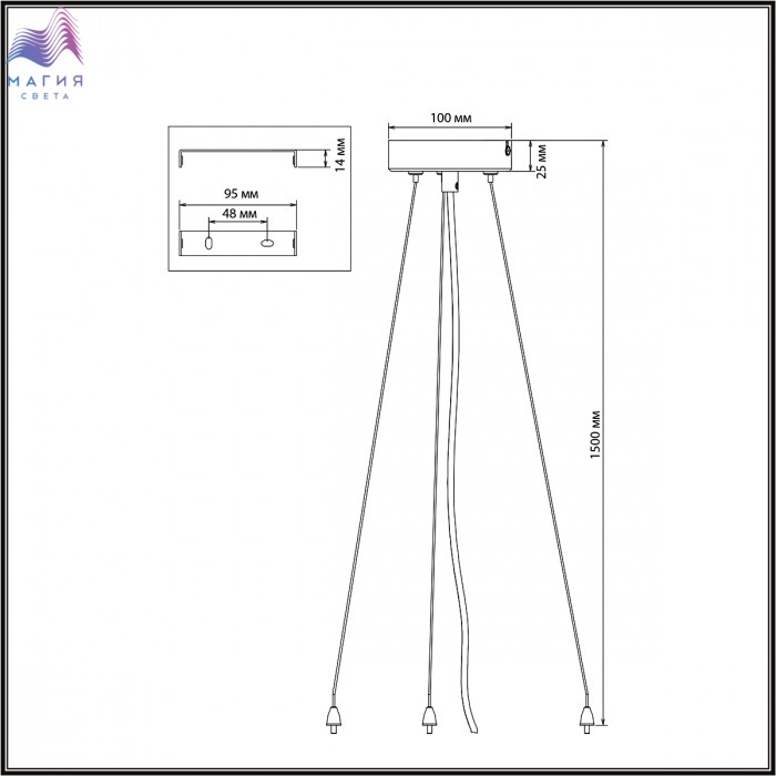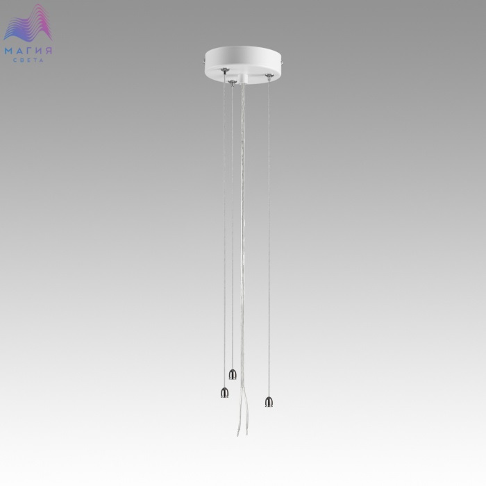 Тросы подвесного крепления для модели QUANTUM LED выполнены из металла. Потолочная металлическая чаша выкрашена в цвет корпуса светильника - снежно-белый. Питающий провод - белого цвета.