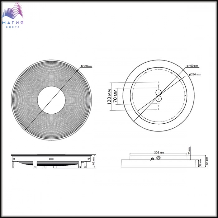 Стильные светильники Сонекс Quantum. Светодиодный модуль располагается по окружности светильников, а так же в центральной части, давая отраженный свет и красивый эффект на внутренней ребристой поверхности светильника. Модели могут быть установлены как на поверхность потолка, так и как подвесная модель (необходимо приобрести подвесное крепление). IP54.