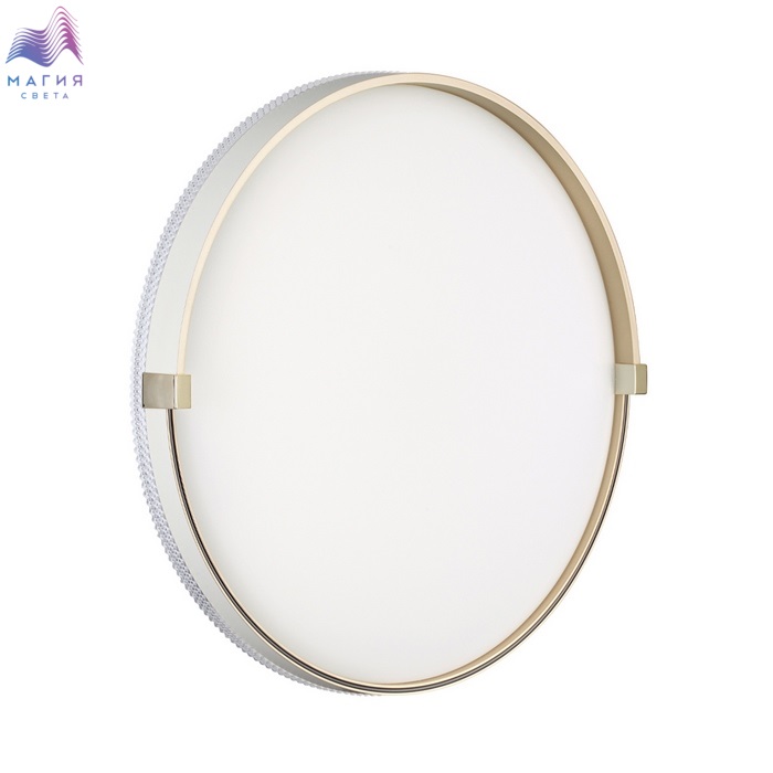ерии Сонекс Olidi white. Матеарил: металл/пластик. Форма: круг, декор - обод из пластика белого и золотистого цветов с прозрачной вставкой под хрусталь. Обод украшен металлическими клипсами, цвет золото. Степень защиты IP43. Переключатель температуры цвета (ССT) на драйвере, с помощью которого осуществляется изменение цветовой температуры 3000/4000/6000К.
