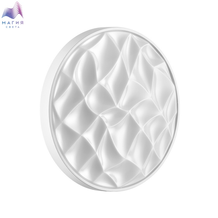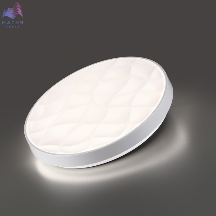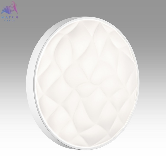 Светильник 7672/ELN серии Сонекс Gitum. Материал: металл/пластик. Форма: круг, декор - рельефная структурая и обод из пластика белого цвета. Степень защиты IP43. Переключатель температуры цвета (ССT) на драйвере, с помощью которого осуществляется изменение цветовой температуры 3000/4000/6000К.